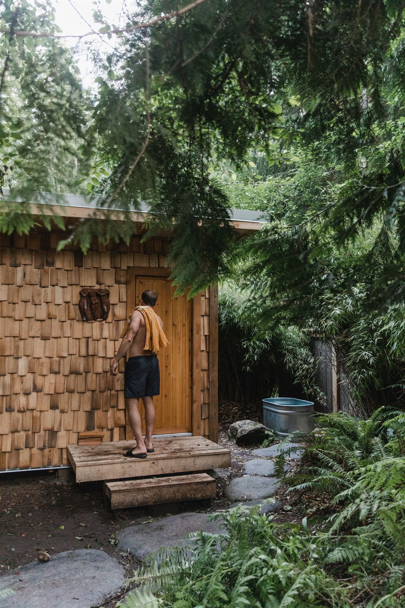 To bathe alfresco amongst the ferns, and to steam in the cedar sauna.
